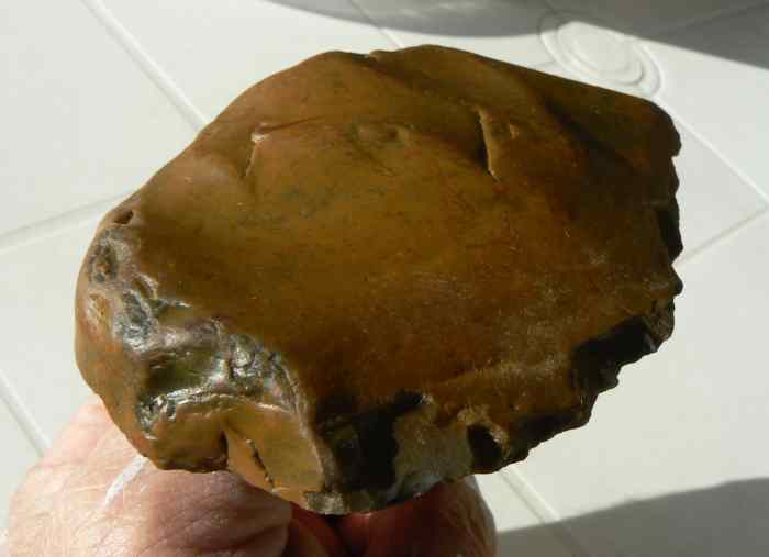 Effectivement on sent que le gars c'est appliqué sur ton galet pour obtenir un tranchant régulier, le mien est plutôt fait à l'arrache, mais il est du même matériau que le big racloir du post 82149 et trouvé dans le même secteur. Pourrais-tu marc, m'envoyer un mail, car j'ai eu une panne d'ordi et j'ai perdu toutes mes adresses. La motivation est toujours là , l'envie de certitude aussi, tu seras le premier à le savoir lorsque je me serais inscrit, c'est le temps qui me manque depuis plusieurs mois, je bosse même souvent le samedi, merci d'avoir répondu à ce post.