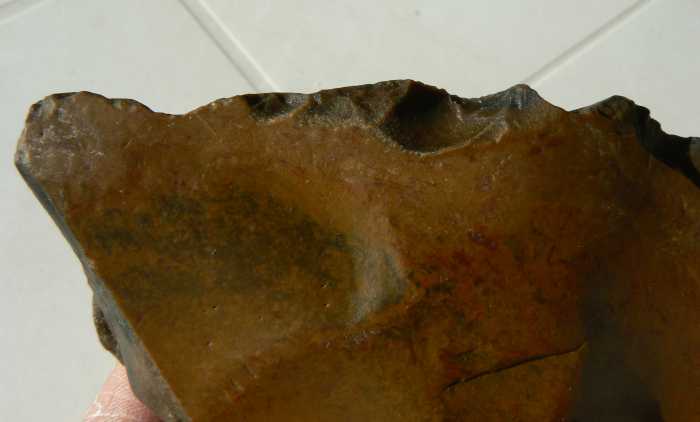 FDLC, ça ne ce bouscule pas pour répondre, comme le disait FatMat, tes post ne sont pas évidents, cette pièce là ne semble pas avoir été débitée de façon rationnelle, c'est un peu anarchique tout comme les ' retouches ', j'ai un racloir similaire fait sur un éclat de galet de quartzite, seullement ici les retouches sont toutes du mème coté et contigues, un travail soigné pour obtenir une belle arète.
