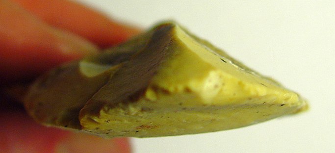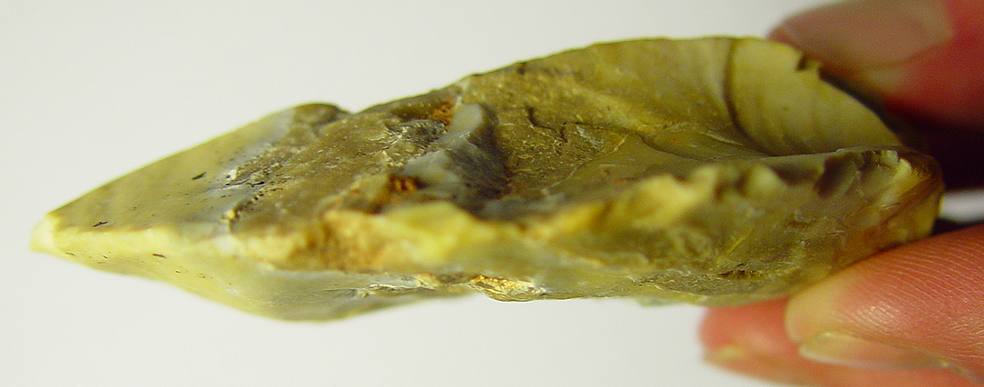 Le haut de la pointe est en silex à grain fin, juste apres on a un genre de