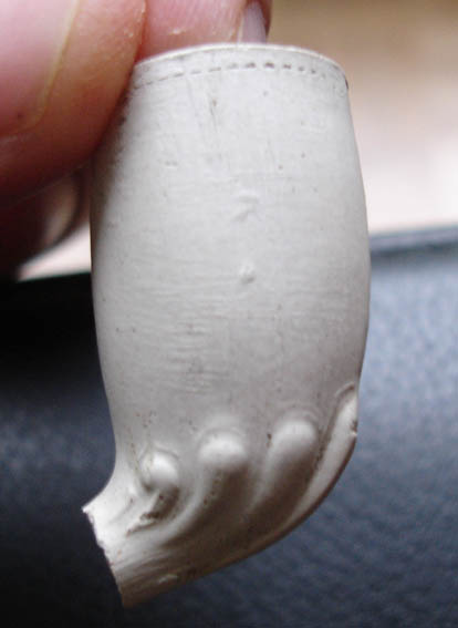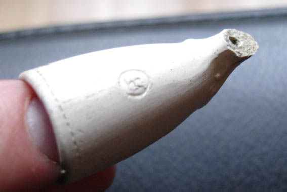 Une fois n'est pas coutume, à défaut de silex... taillé… je vous soumets un culot de pipe trouvé pendant une pause clope, dans le jardinet de l'endroit où je bosse.