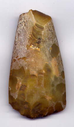 Sans aucun doute une hache en silex polie...assez jolie bien qu'elle soit ébréchée sur son tranchant et que sont talon soit un peu cassé. Il en manque pas beaucoup pour quelle soit complète.