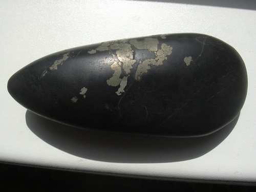 la lame je l'ai faite il y a quelques temps , mais le manche date de samedi , j'ai fait une seconde lame en jais avec des inclusions de pyrite , je voulais me lancer dans l'artisanat mais je n'est pu me resoudre a les vendres .