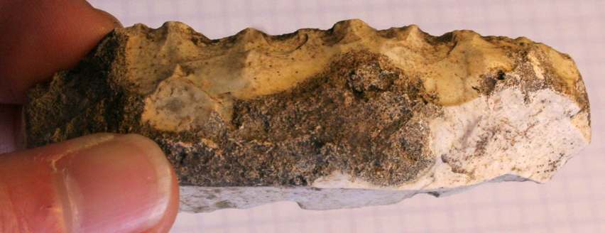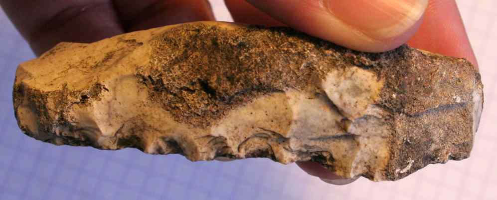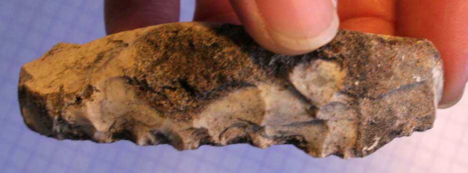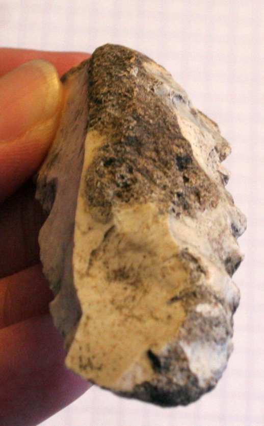 Donc s'agit-il d'un denticulé (à bord abattu... jamais entendu parlé de ça...), ou plutot d'un grattoir (lateral... ça aussi ça vaut son pesant de cacahouète ) ou d'un genre de scie... ?