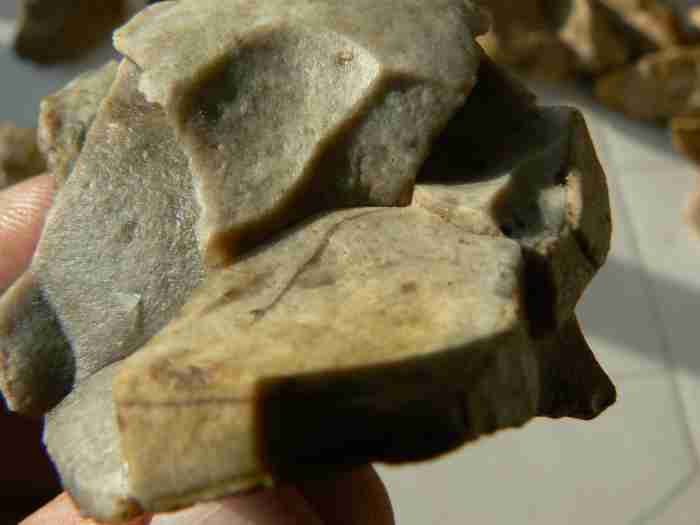 ...sur celle-ci on voit un bulbe en négatif qui pourrait être le démarage d'une petite lamelle qui partait sur la partie brisée