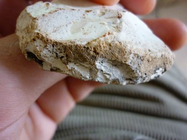 Dans celui-ci on dirait que le gars à pas fini le boulot, il y a aussi ce morceau de cortex sur le haut du front ? Eclat anthropique a peine retouché . Cordialement.