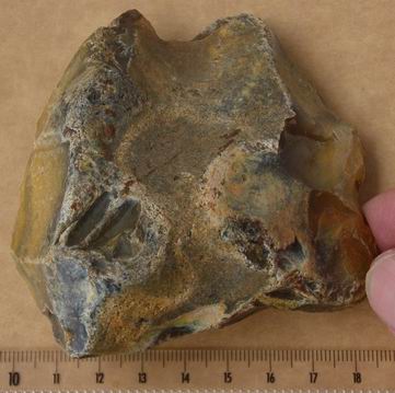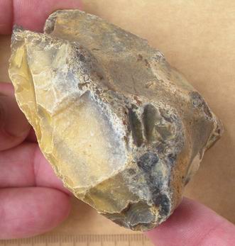 Pour Néodom, ben oui, ça a une allure Levallois mais les éclats irréguliers en surface et le manque de bulbe de percussion ne m'ont pas convaincus. En R1 on voit surtout un front perpendiculaire aux faces avec des enlèvements qui eux semblent plus sûrement d'origine humaine. C'est pour ça que je parle de grattoir.