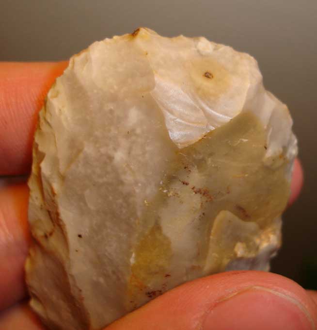 Pour une fois, il ne ressemble pas aux grattoirs que je trouve d'habitude. Les retouches, la forme générale, les traces d'usure et la patine sont différents.