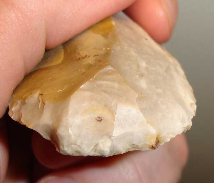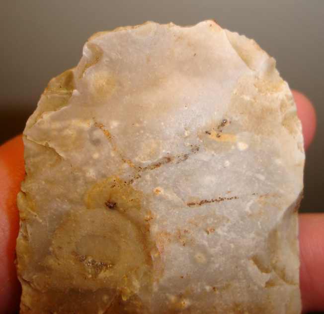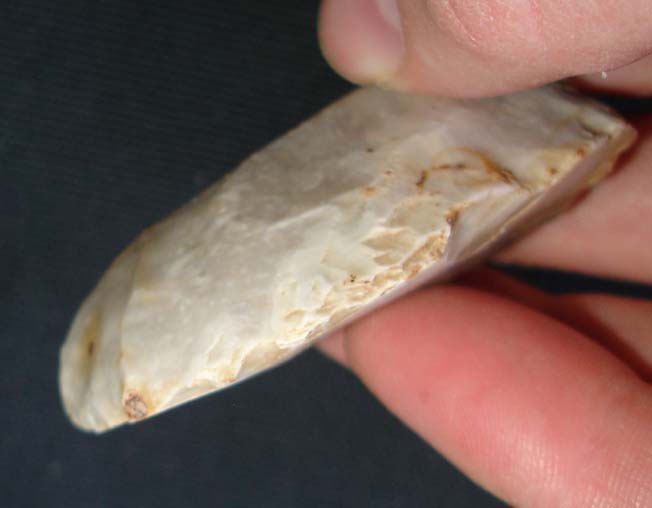 Voici ce que je pense être un grattoir. Il fait 6 cm sur 4, mais il est cassé et devais être sensilement plus long.