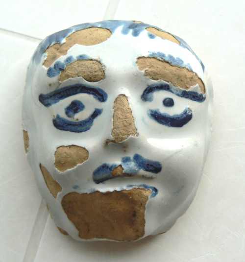 Merci pour ton avis, j'y ai pensé aussi mais je ne pense pas que ce soit ça sans savoir pour autant ce que c'est, j'en possède une fin 19em en porcelaine, c'est vraiment beaucoup plus réaliste, ici cet objet n'a pas de cou et le verso est plat voir même un peu courbé, il pèse un peut plus de 150 grs et mesure 70mm au plus large par 85mm de haut, je pense qu'il a pris des coups plus par roulage dans la rivère ou je l'ai trouvé que sous l'action du gel. Cordialement.