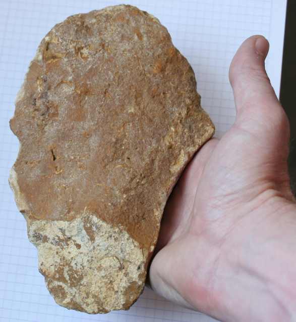 [1501] Sur cette dernière photo, on voit bien que la pièce s'adapte parfaitement à la paume de la main et que cet amménagement doit permettre de tenir très fermement la pièce... (en fait ce qui est bizarre, c'est que l'on ne trouve pas plus de ce type de pièce... c'est tout de même plus confortable que de tenir la pièce par un bout coupant... )