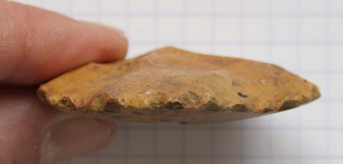 Voici un petit outil circulaire d'environ 3 ou 4cm de diamètre, sur un petit éclat.