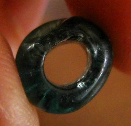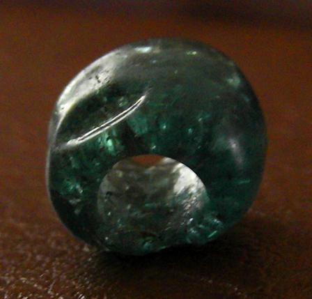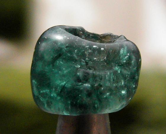 Voilà des photos et c'est-y peut être qu'on y voit un peu plus clair dans la nature du verre de cette perle.