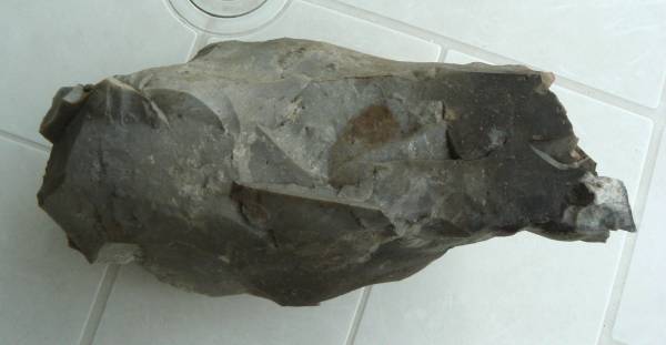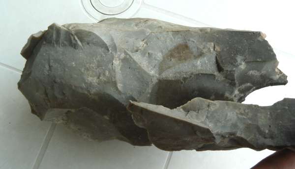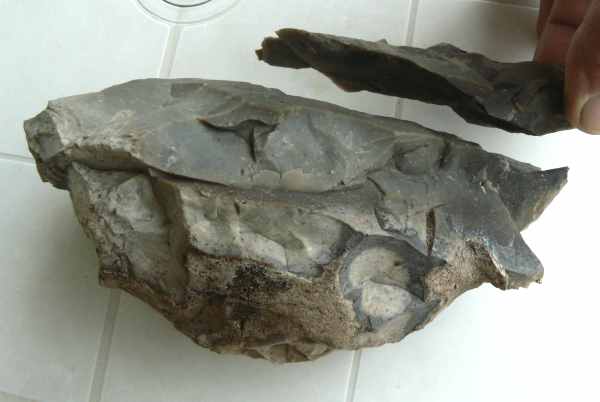 Trouvé ce nucléus d'une vingtaine de centimètres et de qualité moyenne, mais le plus étonnant est d'avoir trouvé à trente cms cette lame détachée du nucléus, trouvé en forêt donc sans intervention mécanique. Merci pour vos avis et commentaires. Cordialement.