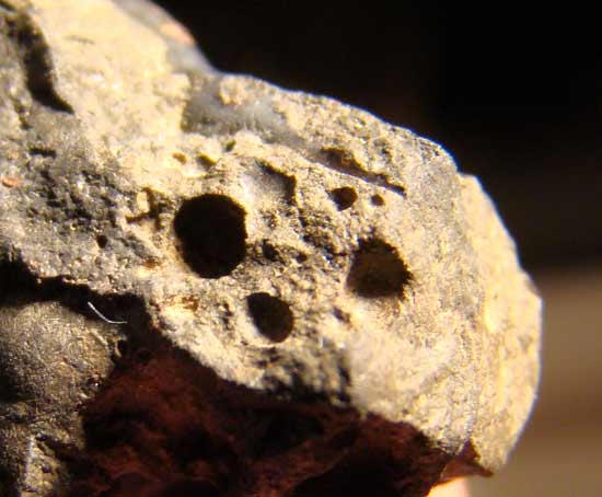 Scories de bas fourneau. C'est souvent un indice de site archéologique lié à la métallurgie du fer.