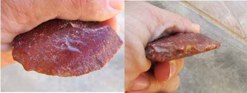 Il me semble qu'il s'agit de silex de couleur rouge ''normal'', je dis cela par rapport à l'aspect moucheté qui est assez typique de ce genre de silex.