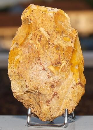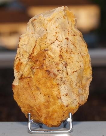 biface acheléen je pense ,ancien ou moyen vu la taille des eclats et l'epaisseur du biface (datation difficile a dire 700 000 a 100 000 ans et encore pas sur il peut etre mousterien.sans contexte pas evident)