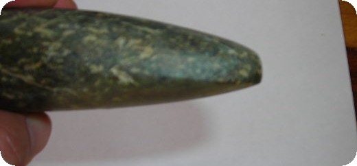 Serait-il possible d'avoir une photo plus large (je sais je suis chiant...) du pseudo-tranchant, histoire de voire si il y a des traces de martèlement ou d'usure.