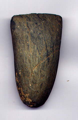 Une hache de cette taille était certainement emmanchée dans une gaîne en bois de cervidé avant d'être fixée au manche
