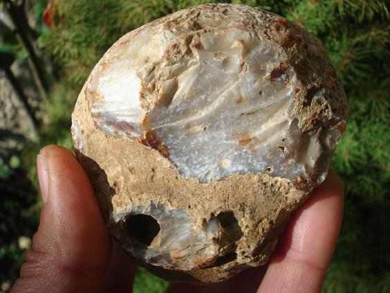 bonjour le no-métal! Merci pour vos belles découvertes! Voiçi ce percuteur trouvé dans le sud-est du Vexin de 8/8cm, très équilibré, se logeant parfaitement dans une grosse main....! Je le trouve beau et vous? Merci pour l'apport des précisions qui vont avec!
