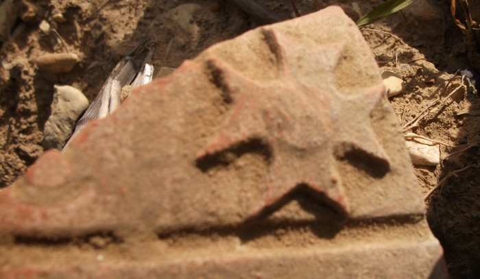 [1133] a tous une petite heure de détecte hier après le boulot ça fait du bien j'ai trouver ce morceau de tuile je panse sans grande importance mais si quelq'un pouvais me dire qu'elle que chose sur se motif merci et bonne journee a tous