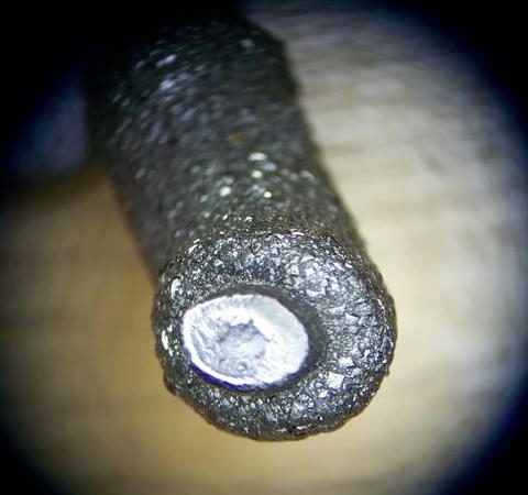 Ce qui est bizarre c'est que la matière brillante entoure cette espèce de cylindre argenté