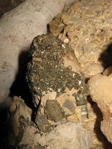 Il s'agit bien de pyrite qui s'est formée dans et autour d'un terrier de la roche environnante. Quand je parle de terrier je fais référence à une bioturbation du fond de la mer à cette époque.