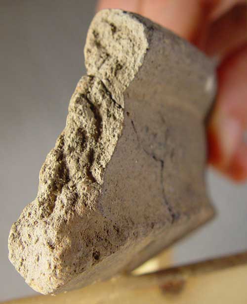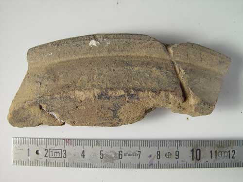D'un point de vue typologique, cette forme pourrait remonter à l'époque gallo-romaine voire plus ancienne. Il faudrait voir avec un archéologue du secteur pour déterminer si le type de pâte conforte cette idée.
