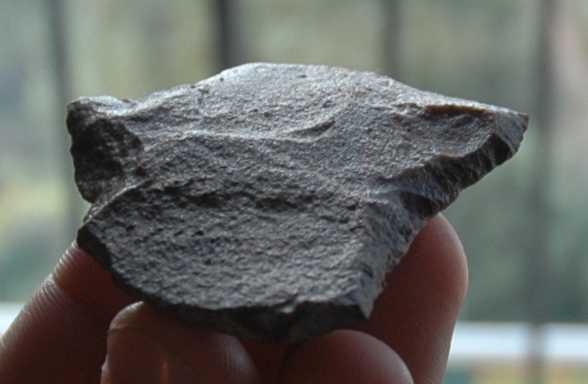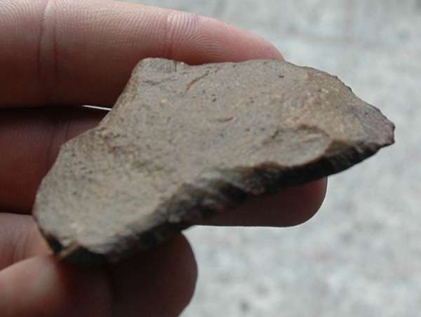 éclat cortical à retouches inverses, certainement très efficace pour le raclage