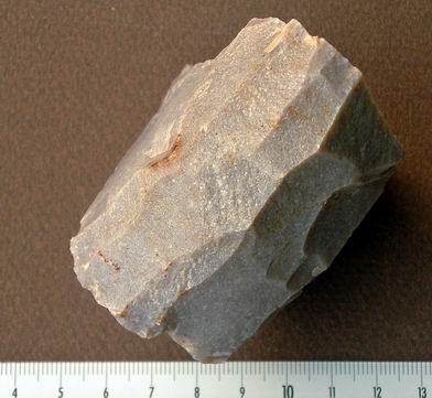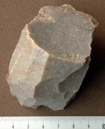 Un nucléus à lamelles bipolaire en grès quartzite. Je le situerais bien fin paléosup mais difficile pour une pièce seule.