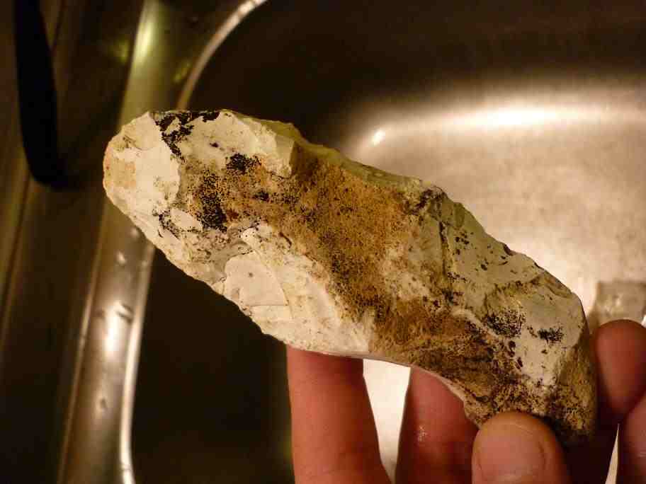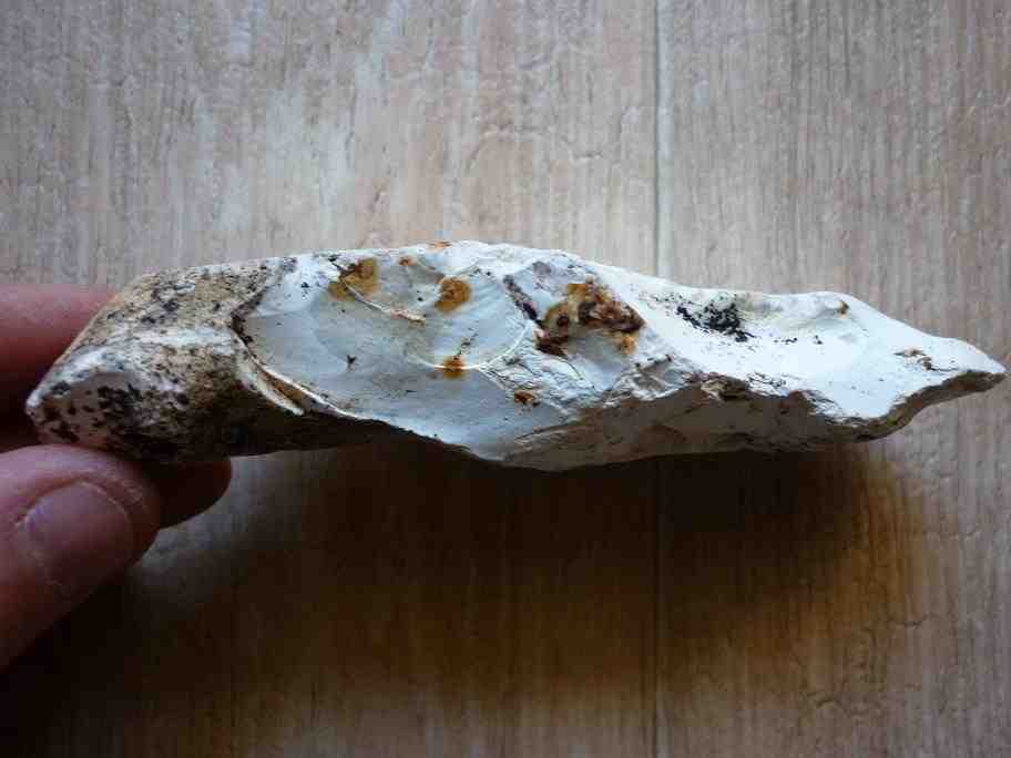 Je constate que les outils paléo et néo possèdent une patine blanche presque identique, donc difficile de trancher, je dirais plutot néo ( j'ai recherché un outil similaire et malheureusement pas retrouvé), que j'avais classé dans le paléo, à cause de la patine et du contexte, et que des 'spécialistes' ont écarté.