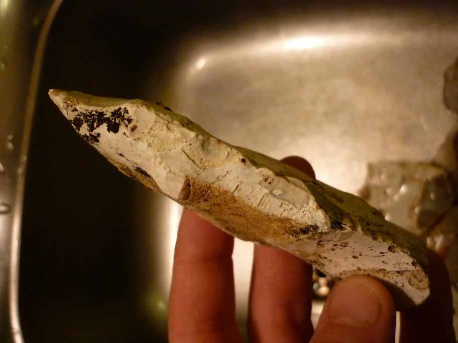 J'aurais besoin de vos avis éclairés sur un outil de typologie peu commune. L'outil mesure 12 cm de long et de 2 à 4,5 cm en largeur; paléolithique ? Est ce un couteau ; un gros racloir, un pic ou un outil multifonctions ?