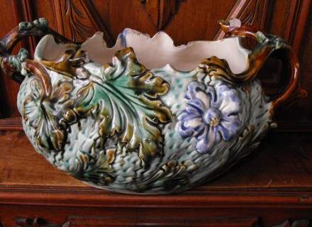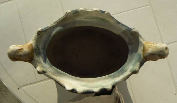 Soupière décorative en barbotine XIXe-XXe grand maximum . (je tire même plus pour le XXe )