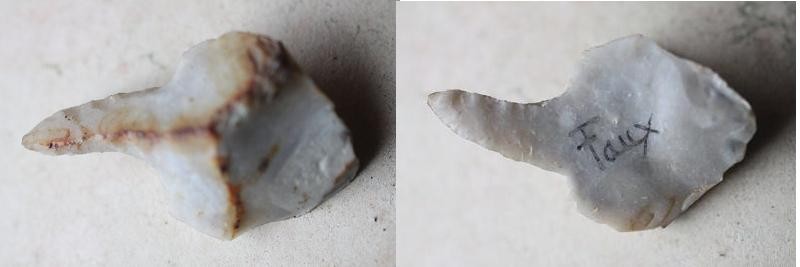 Olivier, effectivement j'avais pensé à ce FAUX là mais en regardant la nouvelle photo de l'indien, je n'y reconnait pas le silex de Dordogne, mais tu pourras me contredire car tu le connais mieux que moi.