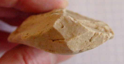 Cela dit, le talon a été travaillé (un morceau a été enlevé, ce qui n'est pas rare dans ce que je trouve par ici...) il est donc possible que cette esquille provienne de cet enlèvement secondaire.