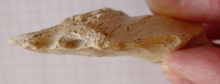 Concernant le silex, non il est pas si pourri que cela... (sur le dessus, il reste pas mal de cortex) bon par contre il s'agit d'un silex à fossile avec pas mal d'inclusions.