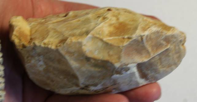 [1501] Ce qui est interessant là , c'est que l'on reconnait bien l'empreinte d'éclats assez commun dans le coin (en chapeau de gendarme... si c'est le terme adequoit... cela dit, il me semblait que c'était un truc de nucleus levallois, alors qu'ici il a été débité sur le coté du nucleus... )