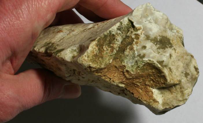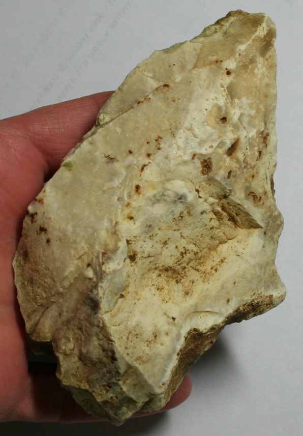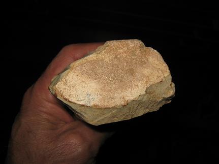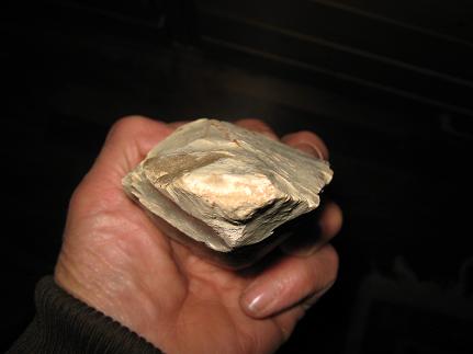 C'est taillé dans un silex d'assez mauvaise qualité, des retouches ? ben j'en vois pas (bref la routine...)