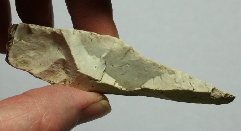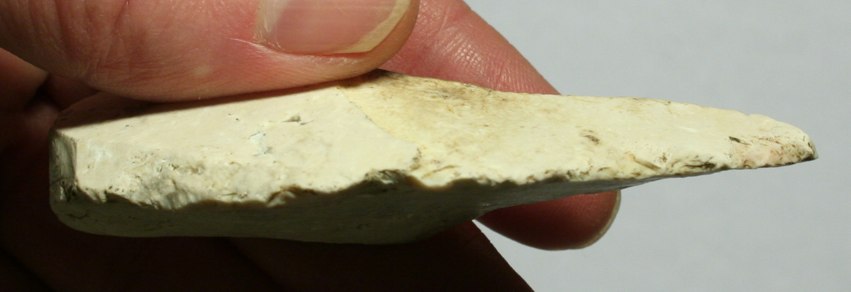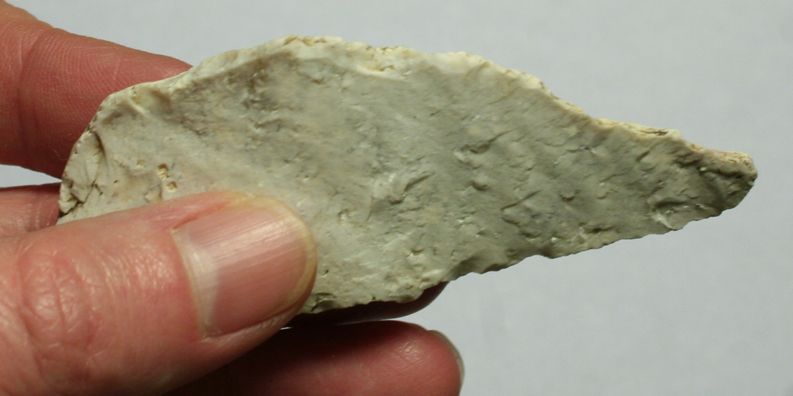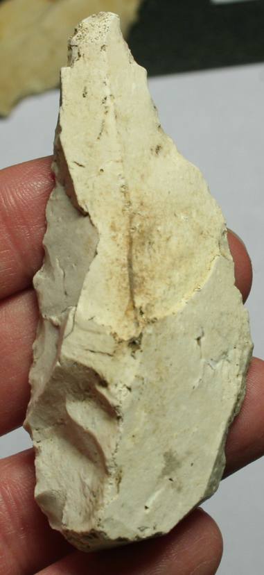 Voici une pointe un peu bizarre qui a sans doute servi comme racloir ou couteau et j'aimerais savoir si ce genre de pointe porte un nom particulier (contexte paleo inf-moyen)
