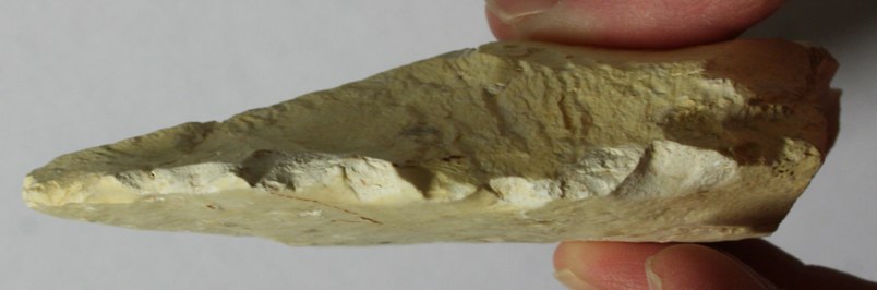 Par contre je vois pas bien comment on peut réussir à débiter un éclat triangulaire de cette taille sans que ça foire...
