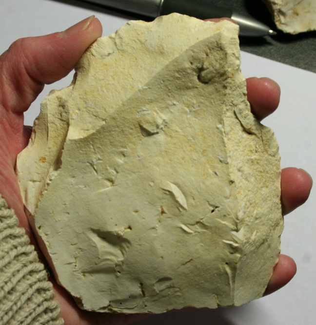 A propos de pointe levallois, voici aussi un nucleus à pointe (de la même taille que cette pointe, mais ne corresponde pas du tout... ) en fait quand je l'ai trouvé j'ai surtout pensé qu'il s'agissait d'un gros racloir denticulé (en fait, il me semble que c'est le cas...)