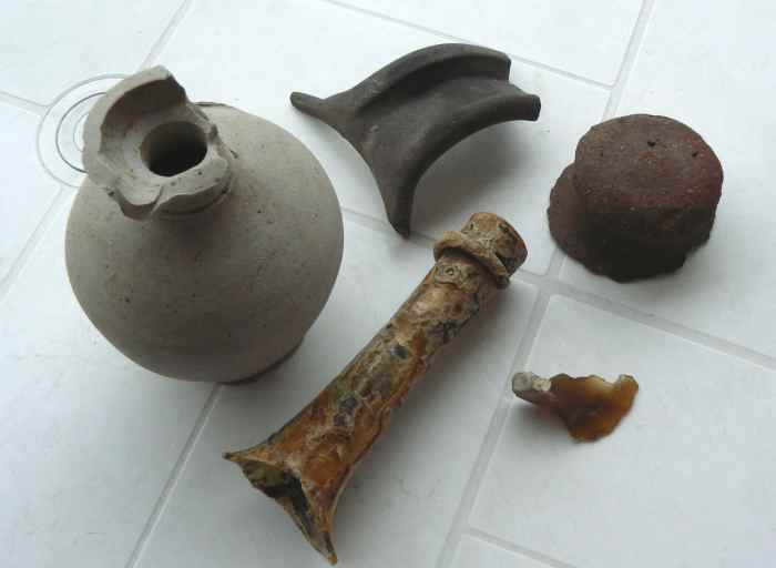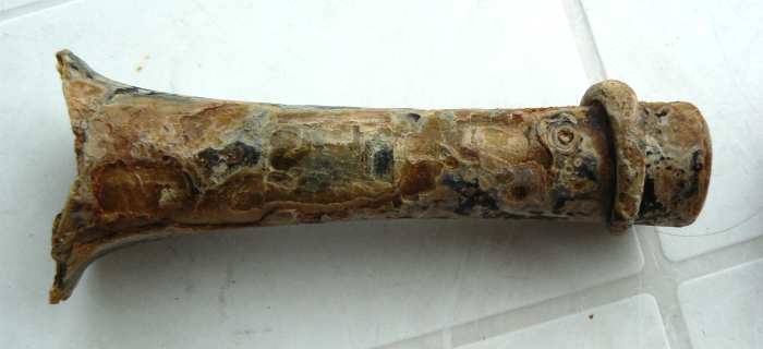 Il y avait un bail que je n'avais pas mis les pieds dans la vase. Ce mimi petit pichet peut-être 18em ? Philippe si tu passes par là . Un fragment d'anse qui sonne métallique, avec une forme que je n'ai jamais trouvée, d'habitude les motifs sont symétriques, un 'saisissoir' qui n'a jamais été collé soit sur un couvercle soit sur les côtés d'un poëlon , un joli petit racloir avec cette patine typique de l'alluvionnaire, on dirait de l'ambre et pour finir ce goulot de bouteille.