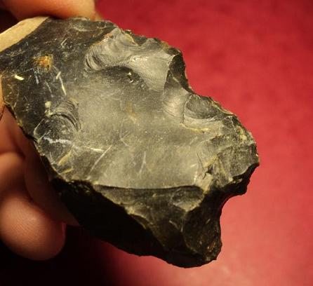Beau silex noir que j'ai failli ne pas ramasser, croyant qu'il s'agissait... d'un bout de plastique froissé !
