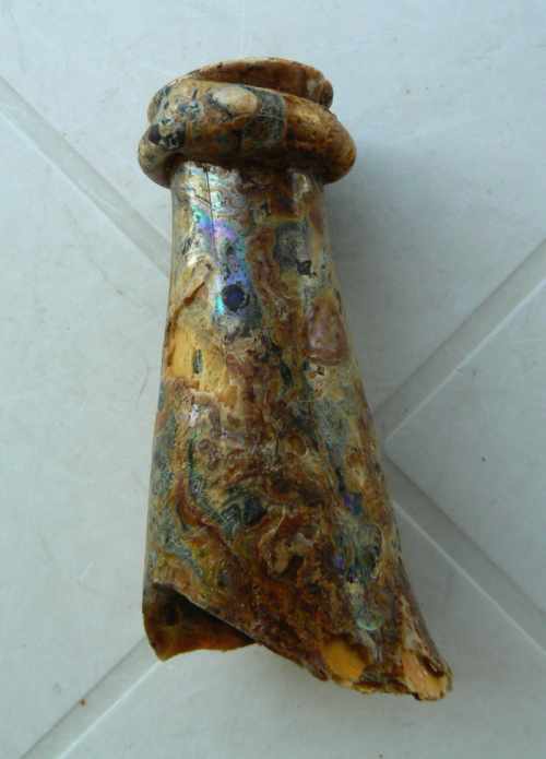 Merci j.b pour ton avis et la doc couleur, effectivement biface parfois je fais aussi des recherche éthyliques Le verre est devenu un vrai mille-feuilles, il ne faut même plus le toucher, il se désagrège, j'en est déja sauvé un de goulot dans le même état en lui passant deux couches d'un super vernis acrylique utisé par les batiments de france entre autres pour la rénovation de fresque ancienne, ça le fonce un peu mais ça le conserve bien.