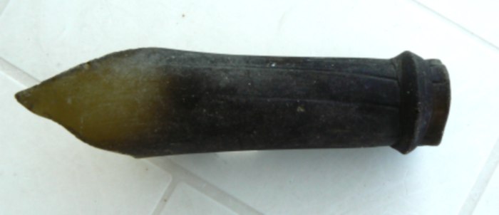 Trouvé ces deux goulots, le deuxième est du 18 em soufflé par l'homme mais dans un moule comme l'expliquait gigi dans le post 65769, mais le premier pourrait être un goulot de ces fameuses bouteilles en forme d' oignon du 17 em ?, gigi si tu passes par là.