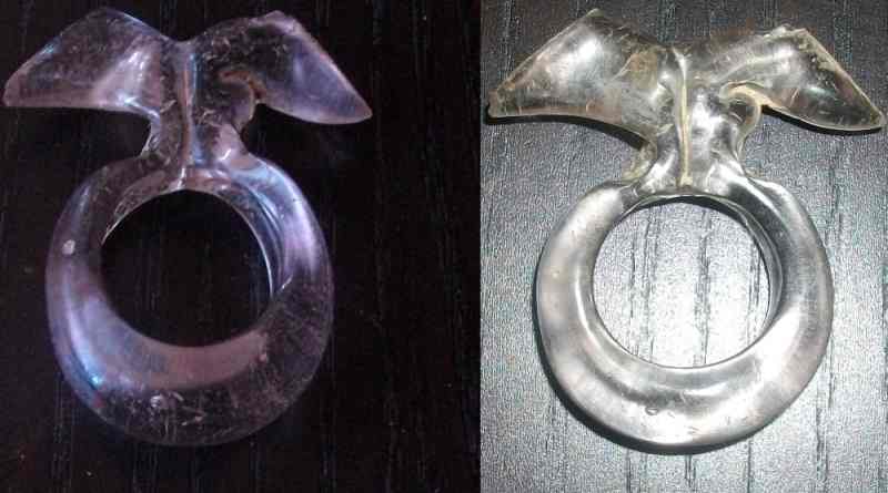 A noté,la difference d epaisseur de l anneau sur toute sa circonference,et les bulles d air visible a l interieur du verre...