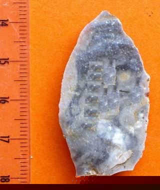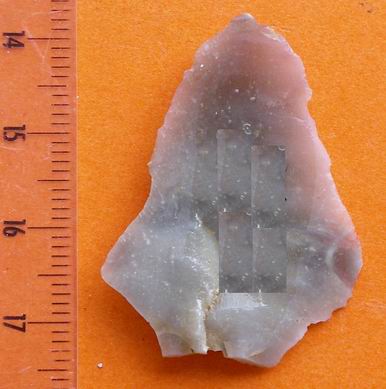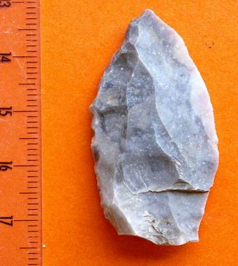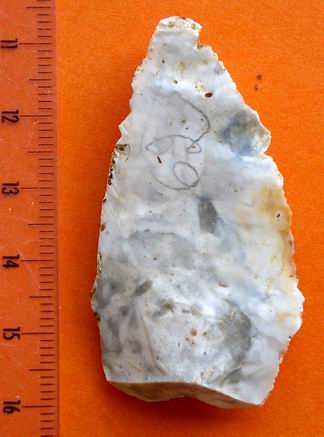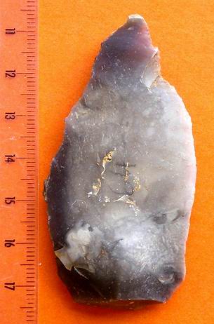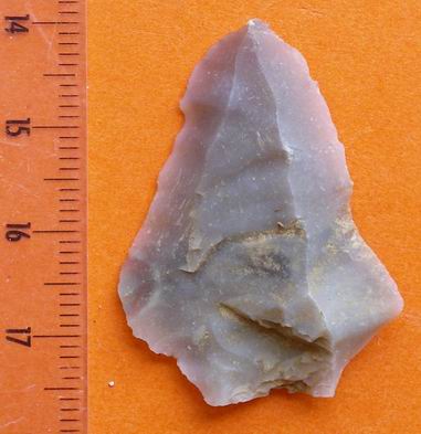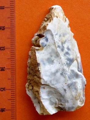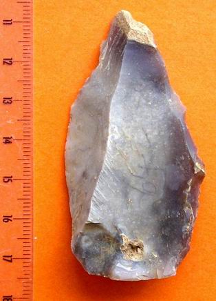 par rapport à la deuxième (qui est tres jolie) qui a un petit air de pointe levallois, je placerais ça dans du paleo moyen (ou paleo inf, acheuléen par rapport au fait qu'il n'y a pas ou peu de retouche.. mais c'est sans doute un peu osé )