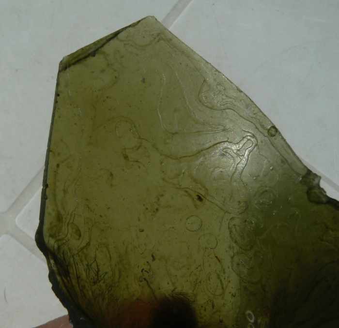 J'ai oublié de préciser que pour arriver à ce résultat, il faut que la bouteille soit soufflée dans un moule. Les bulles se baladent alors entre la bouteille et le moule...
