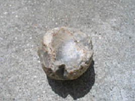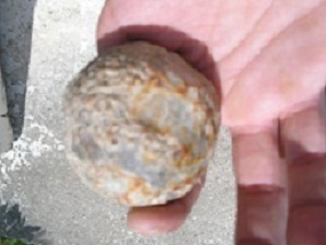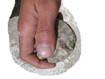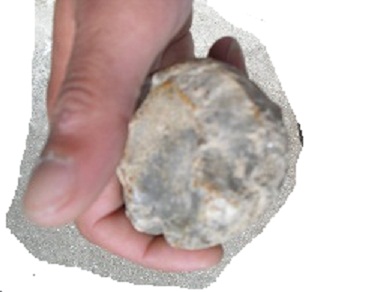 En espérant que s en soit une.Trouvée en se baladant avec un ami pour lui faire découvrir de jolies petits coins natures.En arrivant sur le chemin,je voit que l orage de la veille a enlever beaucoup de terrre et cailloux.Je dit a mon ami:' ici on peut trouver des pieces a l oeil car la pluie a enlever la terre en ruisselant '(cela mais souvent arrivé).Quelques metres apres je m arrete sur un tas de cailloux et paf je trouve cette pierre bizar comme taillée.Elle a beaucoup d impacts.Et a été taillé pour une meilleur tenue dans la main.Mon pouce epouse tres bien la forme ainsi que mes autres doigts.Je pense que c etai un outil pour tailler.J aimerai en savoir plus s il vous plait.merci