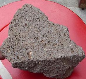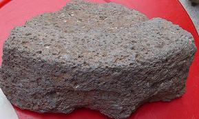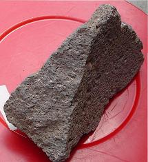 C'est certainement un fragment de meule antique. Par chez nous elles sont en basalte d'Agde et ressemblent beaucoup à çà ...