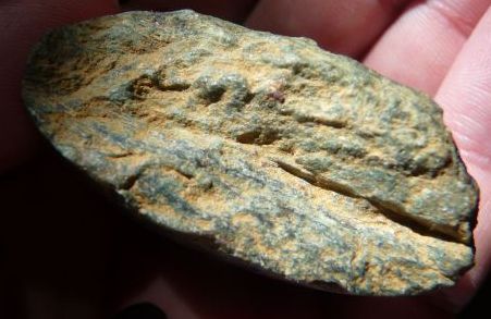 [889] Merci Brannos pour l'ID que j'ai recu pour le tranchant de la grande lame cassee : très probablement amphibolite calcique (néphrite).